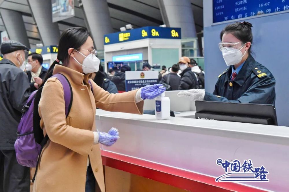 北京南站候车大厅内,客运员每完成一次检票作业,会使用酒精对自动检票闸机进行擦拭;在12306综合服务台,还有为旅客准备的免洗消毒凝胶、一次性口罩等应急备品。